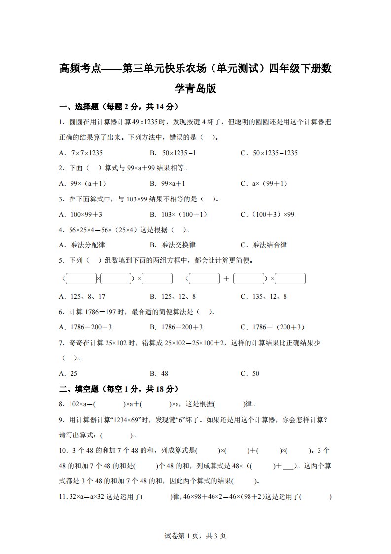 当前位置: 首页小学资源小学四年级正文 青岛版63数学四年级下册第三单元《快乐农场》单元测试卷_共14页 小学四年级 7 天前 0 0 10 以上为部分内容预览,如需源文档请登录您的会员账号进行下载! 声明:本站所有文章,如无特殊说明或标注,均为本站原创发布。任何个人或组织,在未征得本站同意时,禁止复制、盗用、采集、发布本站内容到任何网站、书籍等各类媒体平台。如若本站内容侵犯了原著者的合法权益,可联系我们进行处理。 尚学资源永久会员 打赏 收藏 海报 链接
