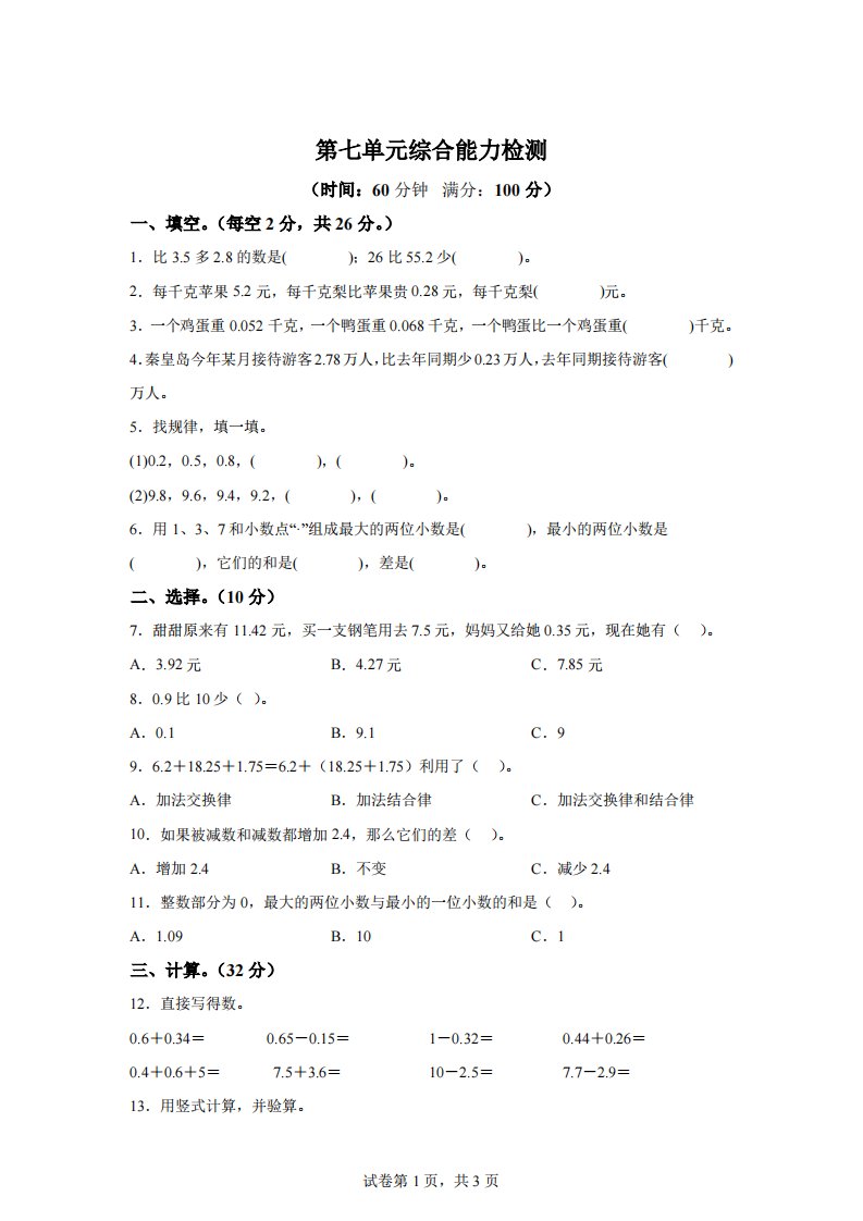 当前位置: 首页小学资源小学四年级正文 青岛版63数学四年级下册第七单元《小数加减法》综合能力检测卷_共10页 小学四年级 7 天前 0 0 5 以上为部分内容预览,如需源文档请登录您的会员账号进行下载! 声明:本站所有文章,如无特殊说明或标注,均为本站原创发布。任何个人或组织,在未征得本站同意时,禁止复制、盗用、采集、发布本站内容到任何网站、书籍等各类媒体平台。如若本站内容侵犯了原著者的合法权益,可联系我们进行处理。 尚学资源永久会员 打赏 收藏 海报 链接