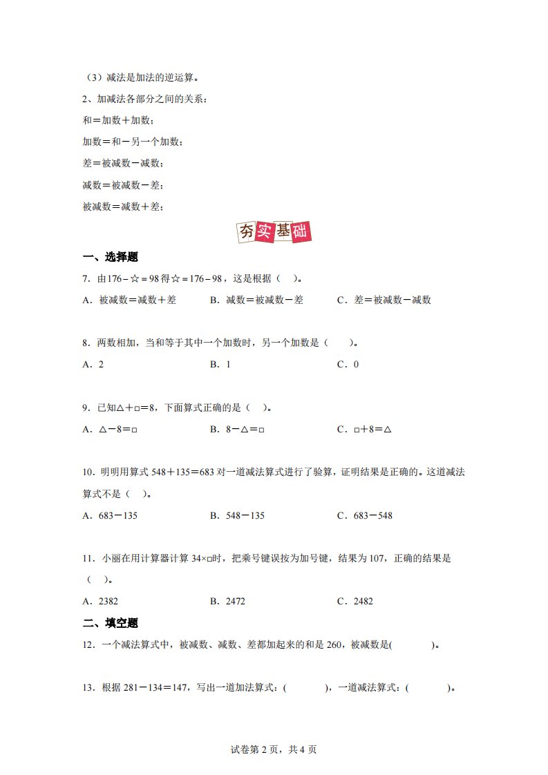 当前位置: 首页小学资源小学四年级正文 【课时】人教版数学四下1.1加减法的意义及各部分间的关系练习卷(提高卷)_共10页 小学四年级 7 天前 0 0 5 以上为部分内容预览,如需源文档请登录您的会员账号进行下载! 声明:本站所有文章,如无特殊说明或标注,均为本站原创发布。任何个人或组织,在未征得本站同意时,禁止复制、盗用、采集、发布本站内容到任何网站、书籍等各类媒体平台。如若本站内容侵犯了原著者的合法权益,可联系我们进行处理。 尚学资源永久会员 打赏 收藏 海报 链接
