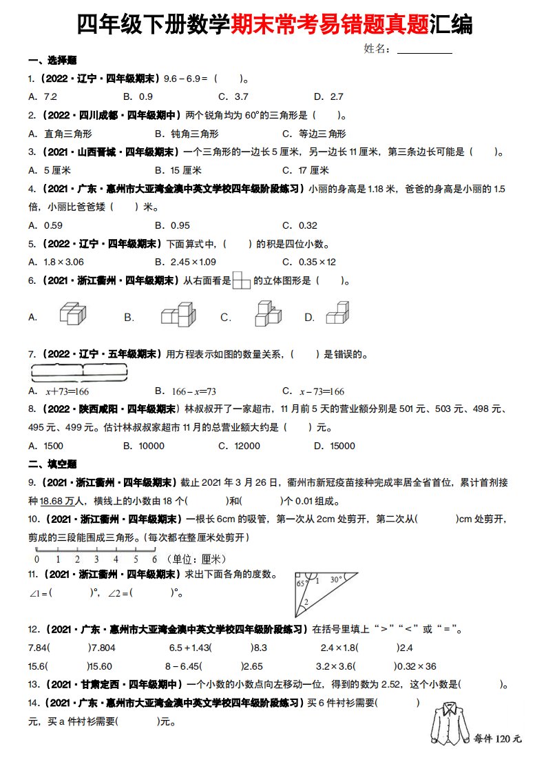 当前位置: 首页小学资源小学四年级正文 【常考易错题真题汇编-北师大版】四下数学_共13页 小学四年级 7 天前 0 0 10 以上为部分内容预览,如需源文档请登录您的会员账号进行下载! 声明:本站所有文章,如无特殊说明或标注,均为本站原创发布。任何个人或组织,在未征得本站同意时,禁止复制、盗用、采集、发布本站内容到任何网站、书籍等各类媒体平台。如若本站内容侵犯了原著者的合法权益,可联系我们进行处理。 尚学资源永久会员 打赏 收藏 海报 链接