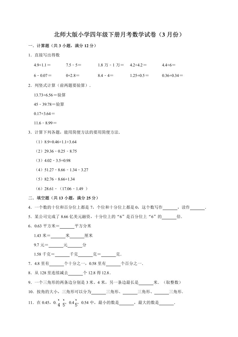 当前位置: 首页小学资源小学四年级正文 四年级数学下册试题-月考试卷(3月份)(有答案)北师大版_共13页 小学四年级 7 天前 0 0 10 以上为部分内容预览,如需源文档请登录您的会员账号进行下载! 声明:本站所有文章,如无特殊说明或标注,均为本站原创发布。任何个人或组织,在未征得本站同意时,禁止复制、盗用、采集、发布本站内容到任何网站、书籍等各类媒体平台。如若本站内容侵犯了原著者的合法权益,可联系我们进行处理。 尚学资源永久会员 打赏 收藏 海报 链接