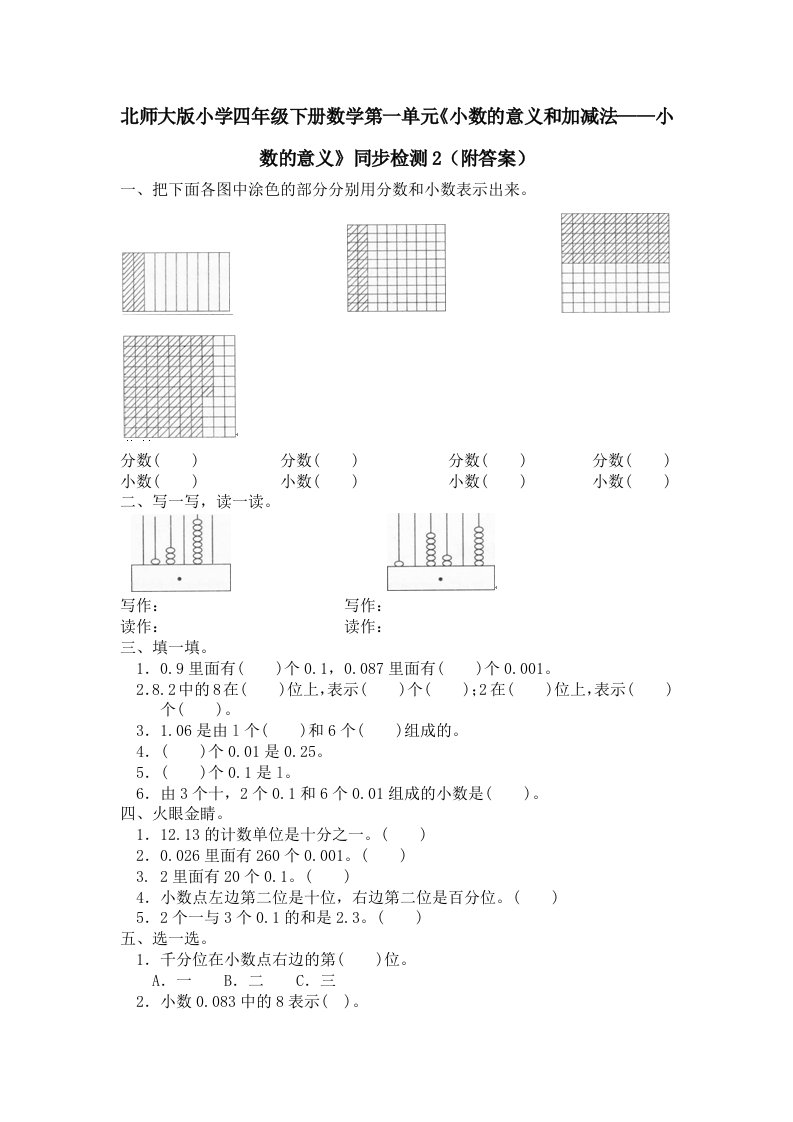 当前位置: 首页小学资源小学四年级正文 四年级数学下册北师大版小学第一单元《小数的意义和加减法——小数的意义》同步检测2(附答案)_共3页 小学四年级 7 天前 0 0 5 以上为部分内容预览,如需源文档请登录您的会员账号进行下载! 声明:本站所有文章,如无特殊说明或标注,均为本站原创发布。任何个人或组织,在未征得本站同意时,禁止复制、盗用、采集、发布本站内容到任何网站、书籍等各类媒体平台。如若本站内容侵犯了原著者的合法权益,可联系我们进行处理。 尚学资源永久会员 打赏 收藏 海报 链接