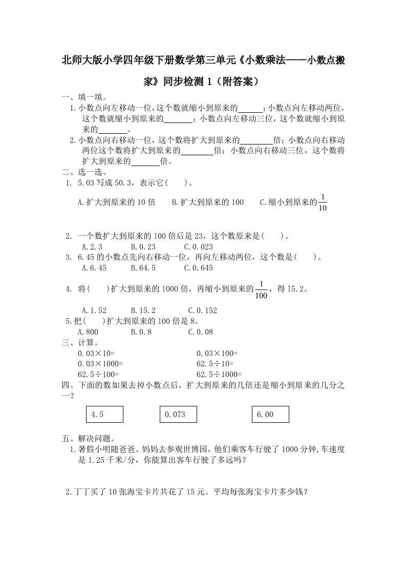 当前位置: 首页小学资源小学四年级正文 四年级数学下册北师大版小学第三单元《小数乘法——小数点搬家》同步检测1(附答案)_共2页 小学四年级 7 天前 0 0 5 以上为部分内容预览,如需源文档请登录您的会员账号进行下载! 声明:本站所有文章,如无特殊说明或标注,均为本站原创发布。任何个人或组织,在未征得本站同意时,禁止复制、盗用、采集、发布本站内容到任何网站、书籍等各类媒体平台。如若本站内容侵犯了原著者的合法权益,可联系我们进行处理。 尚学资源永久会员 打赏 收藏 海报 链接