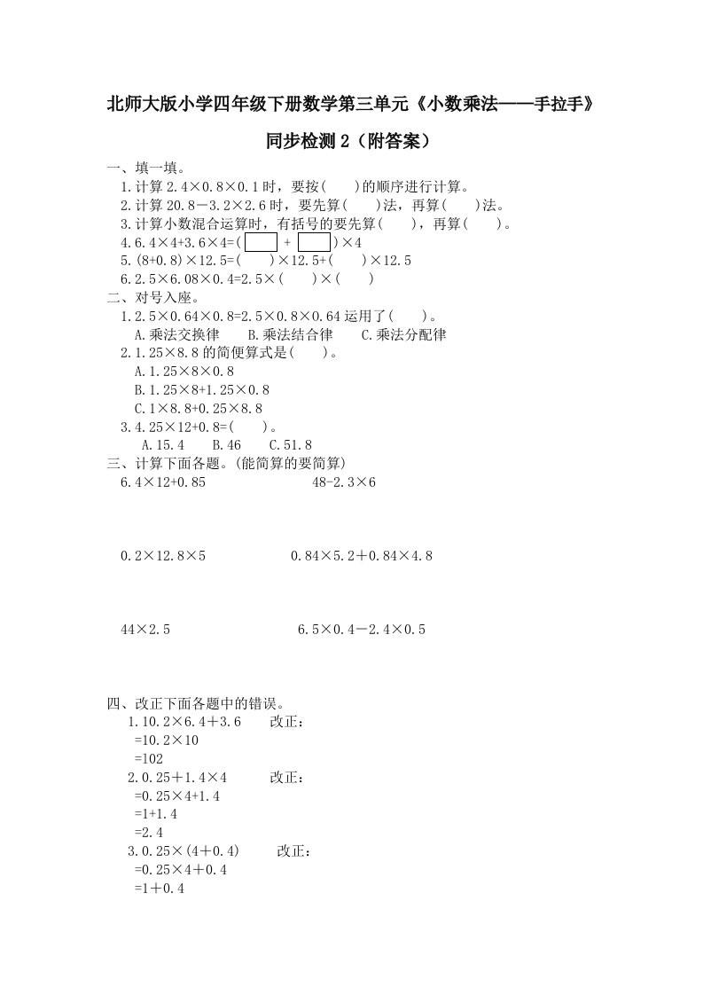当前位置: 首页小学资源小学四年级正文 四年级数学下册北师大版小学第三单元《小数乘法——手拉手》同步检测2(附答案)_共2页 小学四年级 7 天前 0 0 5 以上为部分内容预览,如需源文档请登录您的会员账号进行下载! 声明:本站所有文章,如无特殊说明或标注,均为本站原创发布。任何个人或组织,在未征得本站同意时,禁止复制、盗用、采集、发布本站内容到任何网站、书籍等各类媒体平台。如若本站内容侵犯了原著者的合法权益,可联系我们进行处理。 尚学资源永久会员 打赏 收藏 海报 链接