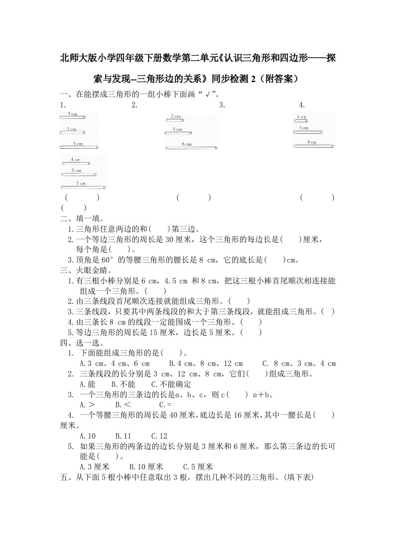 当前位置: 首页小学资源小学四年级正文 四年级数学下册北师大版小学第二单元《认识三角形和四边形——探索与发现–三角形边的关系》同步检测2(附答案)_共3页 小学四年级 7 天前 0 0 5 以上为部分内容预览,如需源文档请登录您的会员账号进行下载! 声明:本站所有文章,如无特殊说明或标注,均为本站原创发布。任何个人或组织,在未征得本站同意时,禁止复制、盗用、采集、发布本站内容到任何网站、书籍等各类媒体平台。如若本站内容侵犯了原著者的合法权益,可联系我们进行处理。 尚学资源永久会员 打赏 收藏 海报 链接