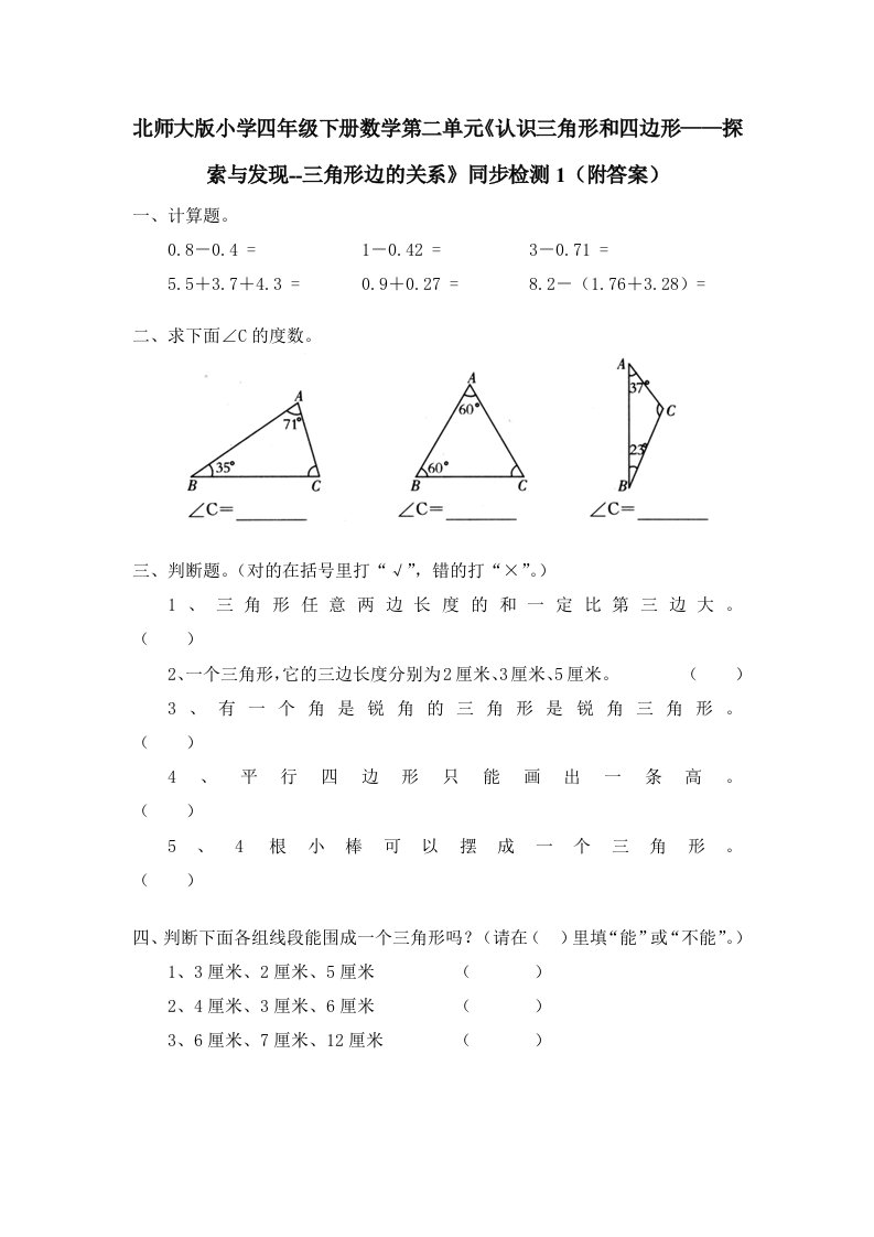 当前位置: 首页小学资源小学四年级正文 四年级数学下册北师大版小学第二单元《认识三角形和四边形——探索与发现–三角形边的关系》同步检测1(附答案)_共4页 小学四年级 7 天前 0 0 5 以上为部分内容预览,如需源文档请登录您的会员账号进行下载! 声明:本站所有文章,如无特殊说明或标注,均为本站原创发布。任何个人或组织,在未征得本站同意时,禁止复制、盗用、采集、发布本站内容到任何网站、书籍等各类媒体平台。如若本站内容侵犯了原著者的合法权益,可联系我们进行处理。 尚学资源永久会员 打赏 收藏 海报 链接