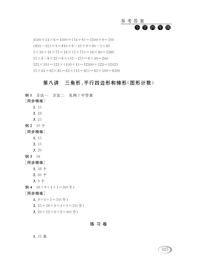 当前位置: 首页小学资源小学四年级正文 四年级数学下册第八讲三角形、平行四边形和梯形(图形计数)参考答案_共2页 小学四年级 6 天前 0 0 5 以上为部分内容预览,如需源文档请登录您的会员账号进行下载! 声明:本站所有文章,如无特殊说明或标注,均为本站原创发布。任何个人或组织,在未征得本站同意时,禁止复制、盗用、采集、发布本站内容到任何网站、书籍等各类媒体平台。如若本站内容侵犯了原著者的合法权益,可联系我们进行处理。 尚学资源永久会员 打赏 收藏 海报 链接