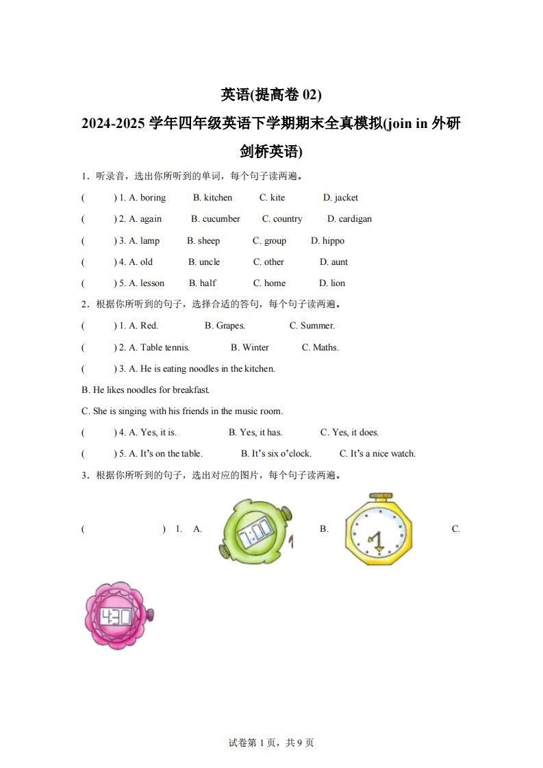 当前位置: 首页小学资源小学四年级正文 2024-2025学年四年级英语下学期期末全真模拟(joinin外研剑桥英语)英语(提高卷02)_共16页 小学四年级 6 天前 0 0 10 以上为部分内容预览,如需源文档请登录您的会员账号进行下载! 声明:本站所有文章,如无特殊说明或标注,均为本站原创发布。任何个人或组织,在未征得本站同意时,禁止复制、盗用、采集、发布本站内容到任何网站、书籍等各类媒体平台。如若本站内容侵犯了原著者的合法权益,可联系我们进行处理。 尚学资源永久会员 打赏 收藏 海报 链接