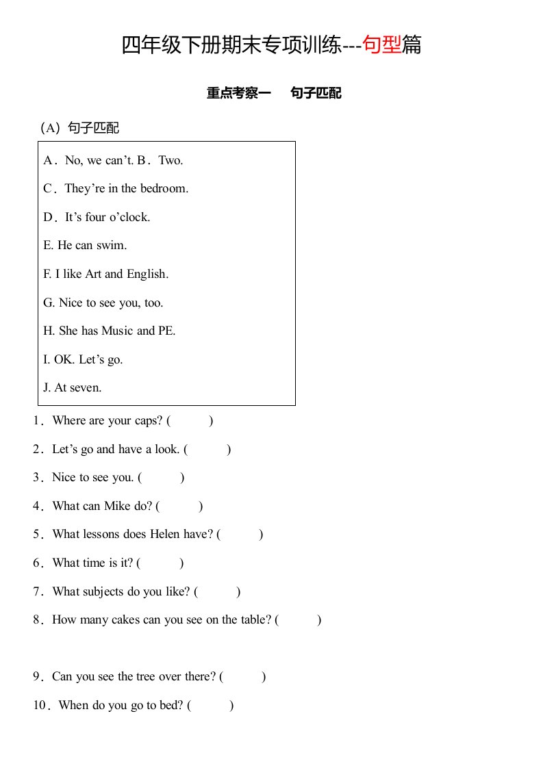 当前位置: 首页小学资源小学四年级正文 四下译林版英语【期末专项:句型专项】_共16页 小学四年级 6 天前 0 0 10 以上为部分内容预览,如需源文档请登录您的会员账号进行下载! 声明:本站所有文章,如无特殊说明或标注,均为本站原创发布。任何个人或组织,在未征得本站同意时,禁止复制、盗用、采集、发布本站内容到任何网站、书籍等各类媒体平台。如若本站内容侵犯了原著者的合法权益,可联系我们进行处理。 尚学资源永久会员 打赏 收藏 海报 链接