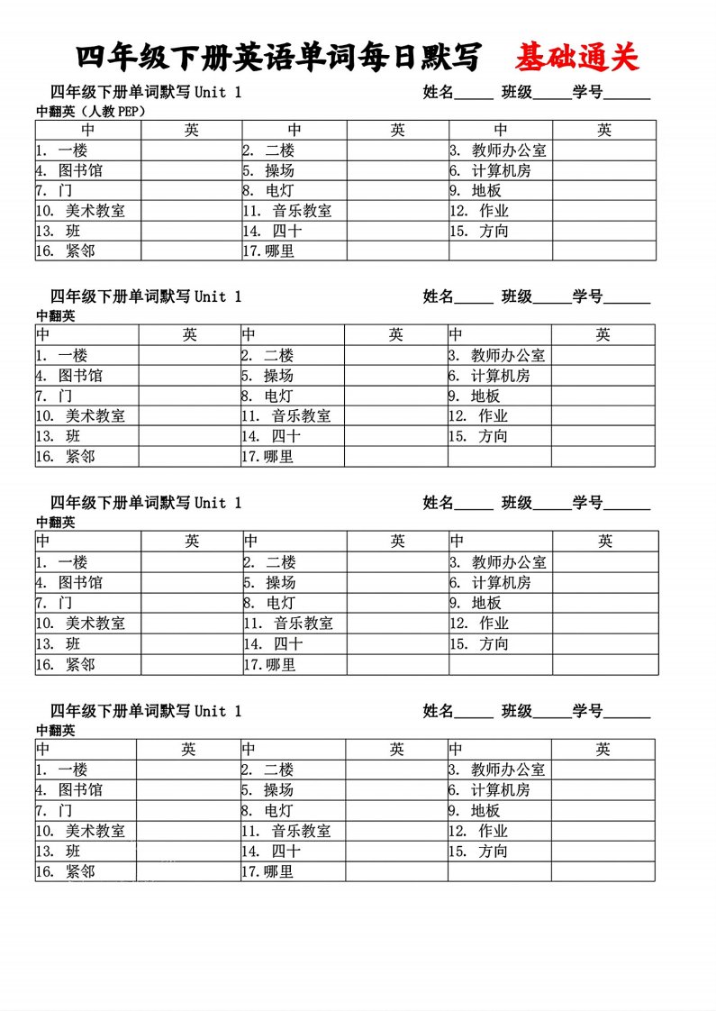 当前位置: 首页小学资源小学四年级正文 四年级下册英语单词每日默写基础通关_共12页 小学四年级 6 天前 0 0 10 以上为部分内容预览,如需源文档请登录您的会员账号进行下载! 声明:本站所有文章,如无特殊说明或标注,均为本站原创发布。任何个人或组织,在未征得本站同意时,禁止复制、盗用、采集、发布本站内容到任何网站、书籍等各类媒体平台。如若本站内容侵犯了原著者的合法权益,可联系我们进行处理。 尚学资源永久会员 打赏 收藏 海报 链接