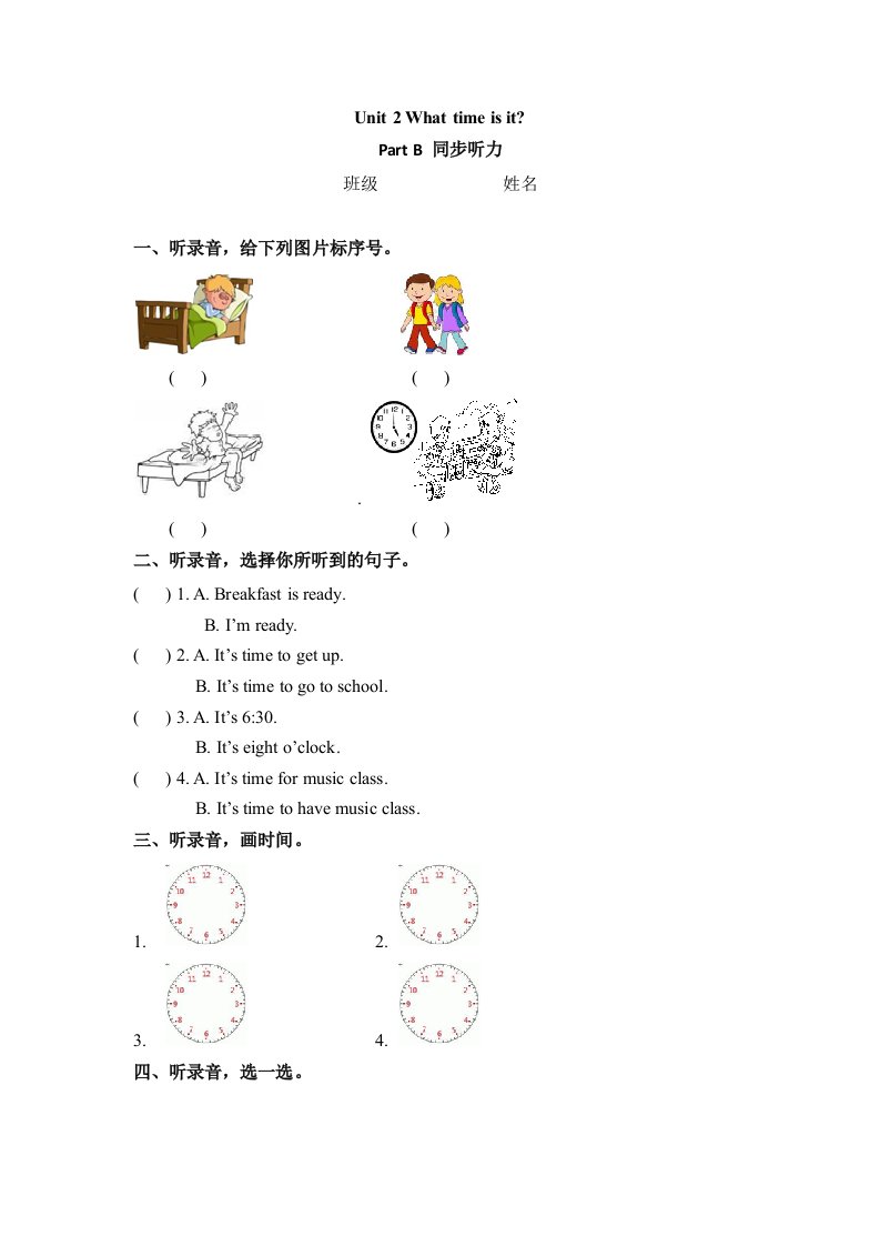 当前位置: 首页小学资源小学四年级正文 四年级英语下册同步听力训练-Unit2WhattimeisitPartB人教PEP版_共3页 小学四年级 6 天前 0 0 5 以上为部分内容预览,如需源文档请登录您的会员账号进行下载! 声明:本站所有文章,如无特殊说明或标注,均为本站原创发布。任何个人或组织,在未征得本站同意时,禁止复制、盗用、采集、发布本站内容到任何网站、书籍等各类媒体平台。如若本站内容侵犯了原著者的合法权益,可联系我们进行处理。 尚学资源永久会员 打赏 收藏 海报 链接