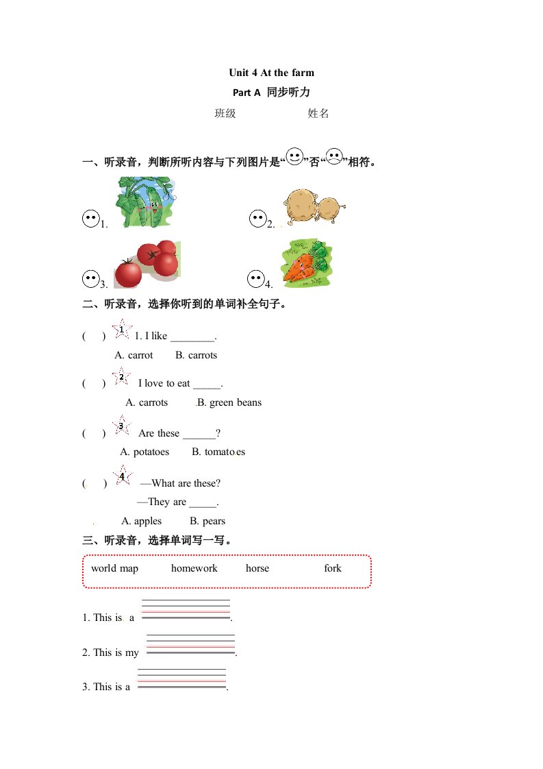 当前位置: 首页小学资源小学四年级正文 四年级英语下册Unit4AtthefarmPartA同步听力训练人教PEP版_共4页 小学四年级 6 天前 0 0 5 以上为部分内容预览,如需源文档请登录您的会员账号进行下载! 声明:本站所有文章,如无特殊说明或标注,均为本站原创发布。任何个人或组织,在未征得本站同意时,禁止复制、盗用、采集、发布本站内容到任何网站、书籍等各类媒体平台。如若本站内容侵犯了原著者的合法权益,可联系我们进行处理。 尚学资源永久会员 打赏 收藏 海报 链接