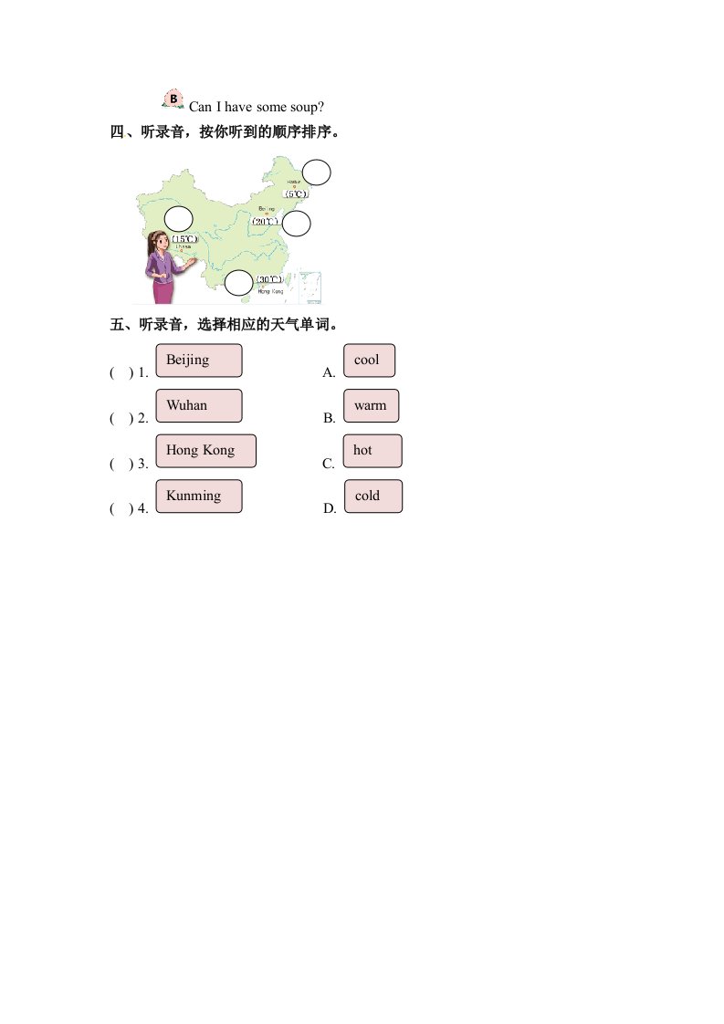 当前位置: 首页小学资源小学四年级正文 四年级英语下册Unit3WeatherPartA同步听力训练人教PEP版_共4页 小学四年级 6 天前 0 0 5 以上为部分内容预览,如需源文档请登录您的会员账号进行下载! 声明:本站所有文章,如无特殊说明或标注,均为本站原创发布。任何个人或组织,在未征得本站同意时,禁止复制、盗用、采集、发布本站内容到任何网站、书籍等各类媒体平台。如若本站内容侵犯了原著者的合法权益,可联系我们进行处理。 尚学资源永久会员 打赏 收藏 海报 链接