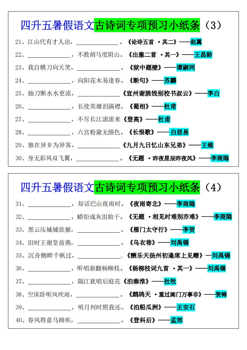当前位置: 首页小学资源小学五年级正文 四升五暑假五上语文预习古诗词专项预习小纸条(含答案10页)_共10页 小学五年级 6 天前 0 0 5 以上为部分内容预览,如需源文档请登录您的会员账号进行下载! 声明:本站所有文章,如无特殊说明或标注,均为本站原创发布。任何个人或组织,在未征得本站同意时,禁止复制、盗用、采集、发布本站内容到任何网站、书籍等各类媒体平台。如若本站内容侵犯了原著者的合法权益,可联系我们进行处理。 尚学资源永久会员 打赏 收藏 海报 链接