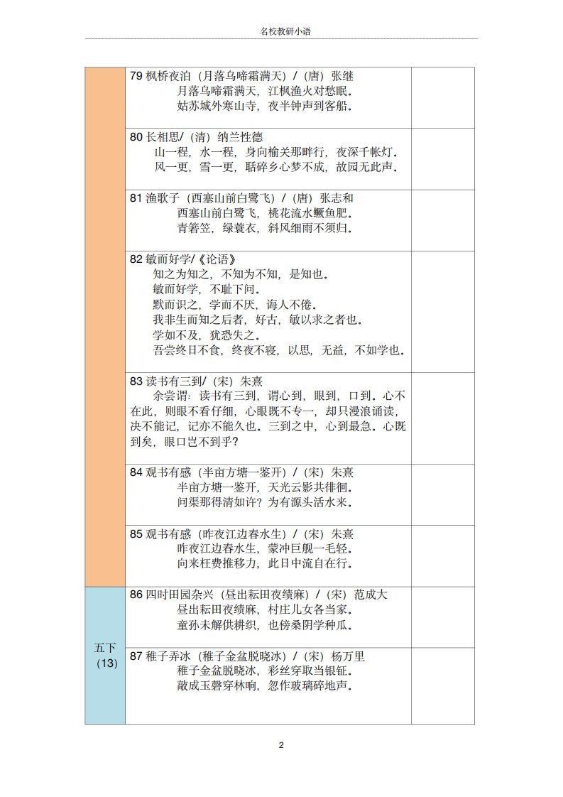 五年级古诗文背诵记录表-五上语文_共4页