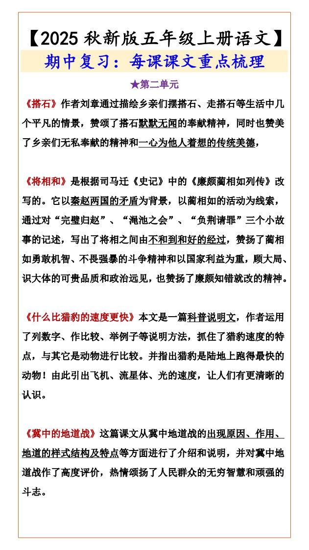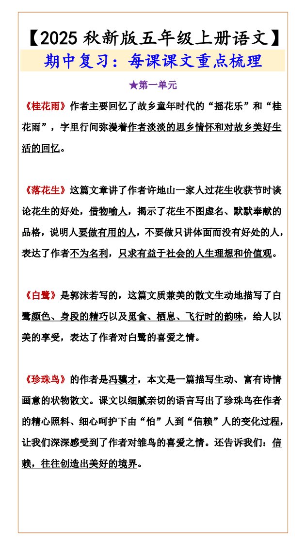 当前位置: 首页小学资源小学五年级正文 【2025秋新版】【五年级上册语文】期中复习:每课课文重点梳理_共5页 小学五年级 1 周前 0 0 5 以上为部分内容预览,如需源文档请登录您的会员账号进行下载! 声明:本站所有文章,如无特殊说明或标注,均为本站原创发布。任何个人或组织,在未征得本站同意时,禁止复制、盗用、采集、发布本站内容到任何网站、书籍等各类媒体平台。如若本站内容侵犯了原著者的合法权益,可联系我们进行处理。 尚学资源永久会员 打赏 收藏 海报 链接