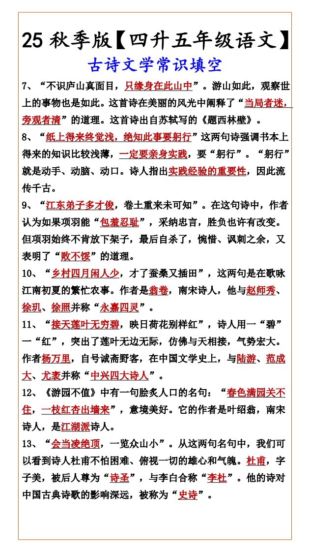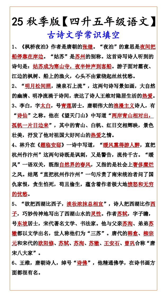 当前位置: 首页小学资源小学五年级正文 【2025秋新版】【四升五年级语文】古诗文学常识填空-五上语文_共5页 小学五年级 1 周前 0 0 5 以上为部分内容预览,如需源文档请登录您的会员账号进行下载! 声明:本站所有文章,如无特殊说明或标注,均为本站原创发布。任何个人或组织,在未征得本站同意时,禁止复制、盗用、采集、发布本站内容到任何网站、书籍等各类媒体平台。如若本站内容侵犯了原著者的合法权益,可联系我们进行处理。 尚学资源永久会员 打赏 收藏 海报 链接