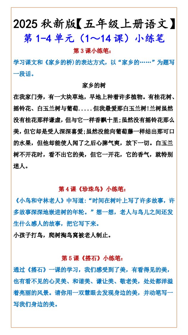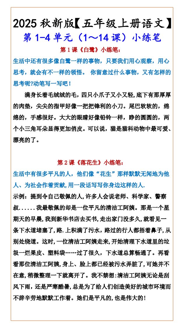 当前位置: 首页小学资源小学五年级正文 【2025秋新版】【五年级上册语文】第1-4单元(1~14课)小练笔_共5页 小学五年级 1 周前 0 0 5 以上为部分内容预览,如需源文档请登录您的会员账号进行下载! 声明:本站所有文章,如无特殊说明或标注,均为本站原创发布。任何个人或组织,在未征得本站同意时,禁止复制、盗用、采集、发布本站内容到任何网站、书籍等各类媒体平台。如若本站内容侵犯了原著者的合法权益,可联系我们进行处理。 尚学资源永久会员 打赏 收藏 海报 链接