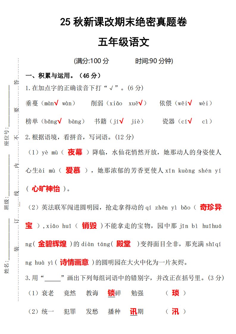 当前位置: 首页小学资源小学五年级正文 【2025秋新版】期末绝密真题卷五年级语文上册_共8页 小学五年级 7 天前 0 0 5 以上为部分内容预览,如需源文档请登录您的会员账号进行下载! 声明:本站所有文章,如无特殊说明或标注,均为本站原创发布。任何个人或组织,在未征得本站同意时,禁止复制、盗用、采集、发布本站内容到任何网站、书籍等各类媒体平台。如若本站内容侵犯了原著者的合法权益,可联系我们进行处理。 尚学资源永久会员 打赏 收藏 海报 链接