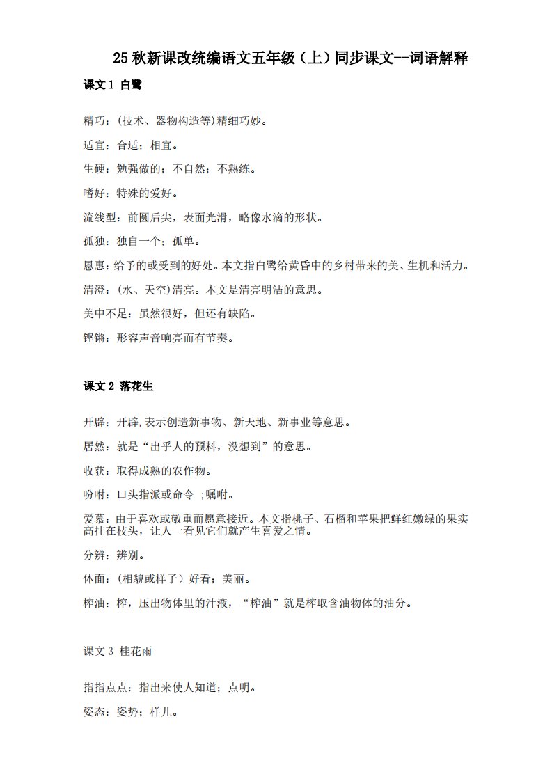 当前位置: 首页小学资源小学五年级正文 【2025秋新版】五年级上册语文全册词语解释大全_共21页 小学五年级 1 周前 0 0 15 以上为部分内容预览,如需源文档请登录您的会员账号进行下载! 声明:本站所有文章,如无特殊说明或标注,均为本站原创发布。任何个人或组织,在未征得本站同意时,禁止复制、盗用、采集、发布本站内容到任何网站、书籍等各类媒体平台。如若本站内容侵犯了原著者的合法权益,可联系我们进行处理。 尚学资源永久会员 打赏 收藏 海报 链接