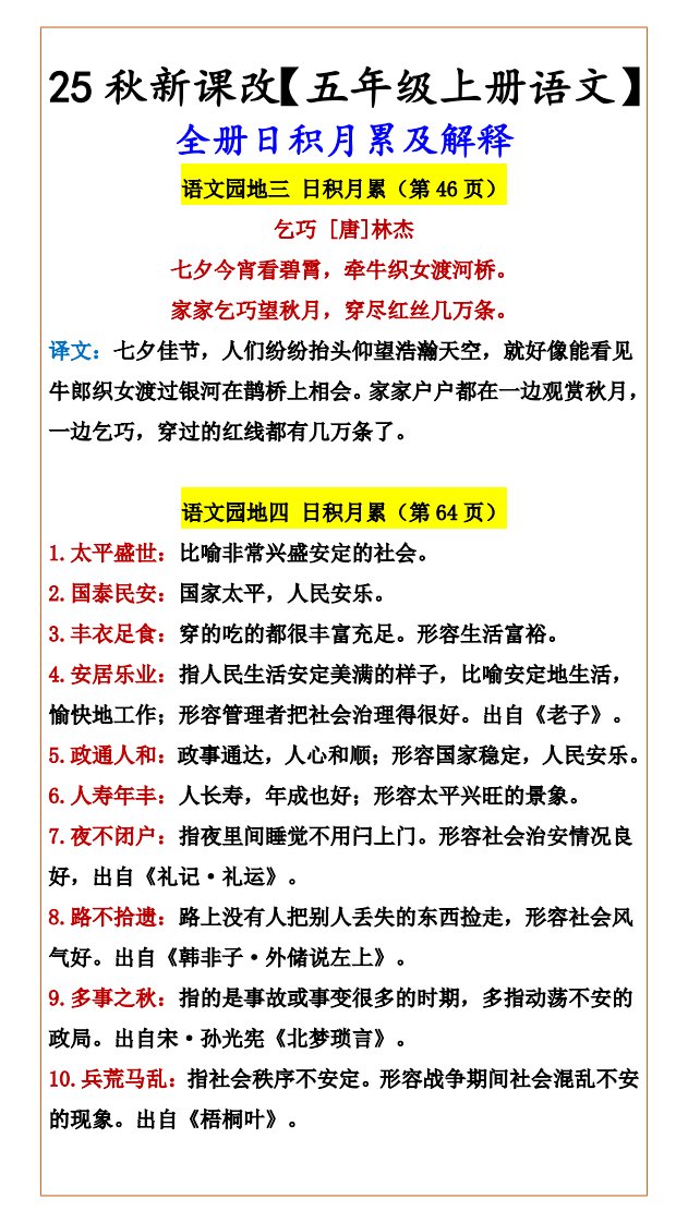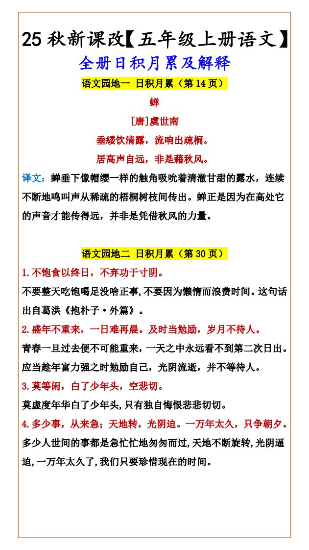 当前位置: 首页小学资源小学五年级正文 【2025秋新版】【五年级上册语文】全册日积月累及解释_共5页 小学五年级 7 天前 0 0 5 以上为部分内容预览,如需源文档请登录您的会员账号进行下载! 声明:本站所有文章,如无特殊说明或标注,均为本站原创发布。任何个人或组织,在未征得本站同意时,禁止复制、盗用、采集、发布本站内容到任何网站、书籍等各类媒体平台。如若本站内容侵犯了原著者的合法权益,可联系我们进行处理。 尚学资源永久会员 打赏 收藏 海报 链接