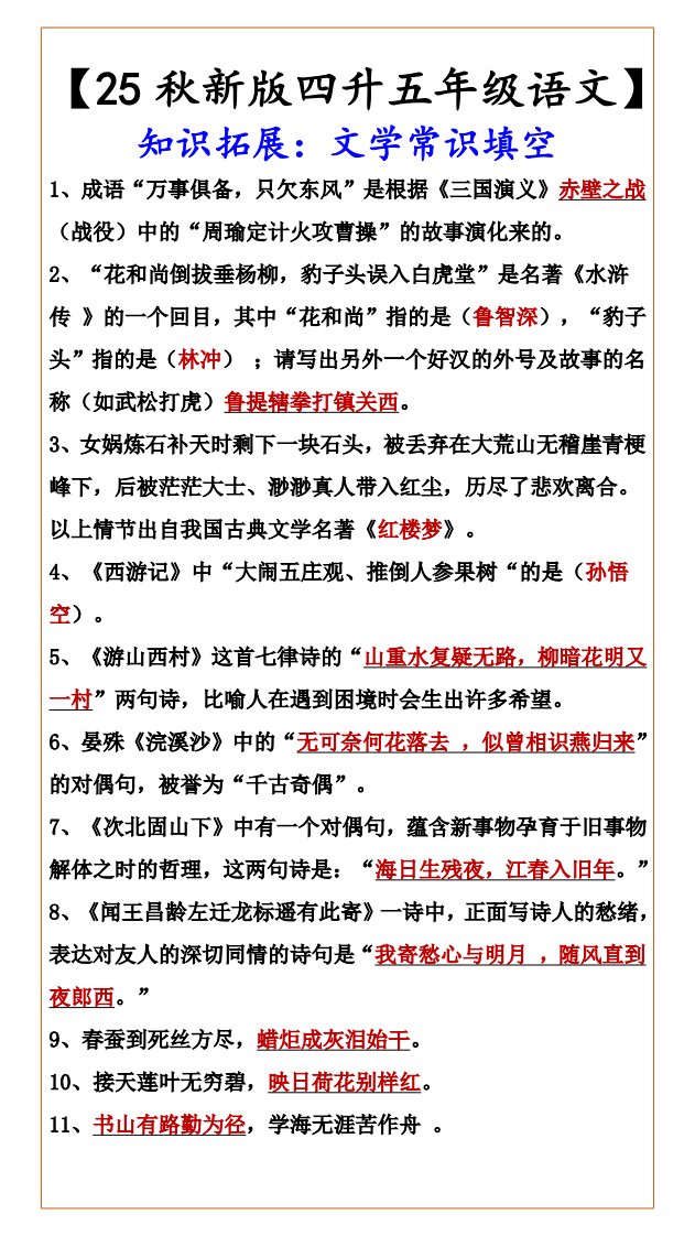 当前位置: 首页小学资源小学五年级正文 【2025秋新版】【四升五年级语文】知识拓展:文学常识填空-五上语文_共5页 小学五年级 1 周前 0 0 5 以上为部分内容预览,如需源文档请登录您的会员账号进行下载! 声明:本站所有文章,如无特殊说明或标注,均为本站原创发布。任何个人或组织,在未征得本站同意时,禁止复制、盗用、采集、发布本站内容到任何网站、书籍等各类媒体平台。如若本站内容侵犯了原著者的合法权益,可联系我们进行处理。 尚学资源永久会员 打赏 收藏 海报 链接