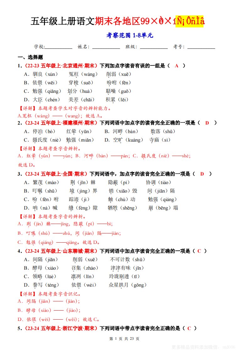 当前位置: 首页小学资源小学五年级正文 【期末选择题专训(答案)】五上语文_共23页 小学五年级 7 天前 0 0 15 以上为部分内容预览,如需源文档请登录您的会员账号进行下载! 声明:本站所有文章,如无特殊说明或标注,均为本站原创发布。任何个人或组织,在未征得本站同意时,禁止复制、盗用、采集、发布本站内容到任何网站、书籍等各类媒体平台。如若本站内容侵犯了原著者的合法权益,可联系我们进行处理。 尚学资源永久会员 打赏 收藏 海报 链接