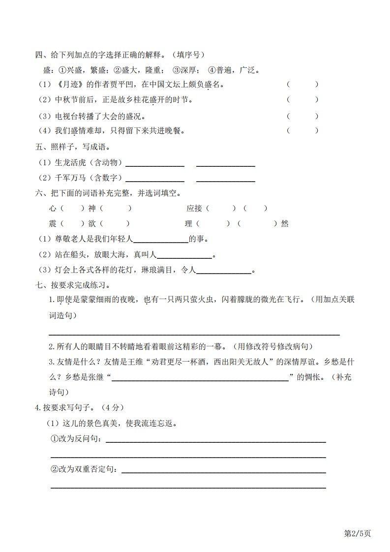 五年级上册语文期末冲刺高频考点附答案(可下载)_共5页