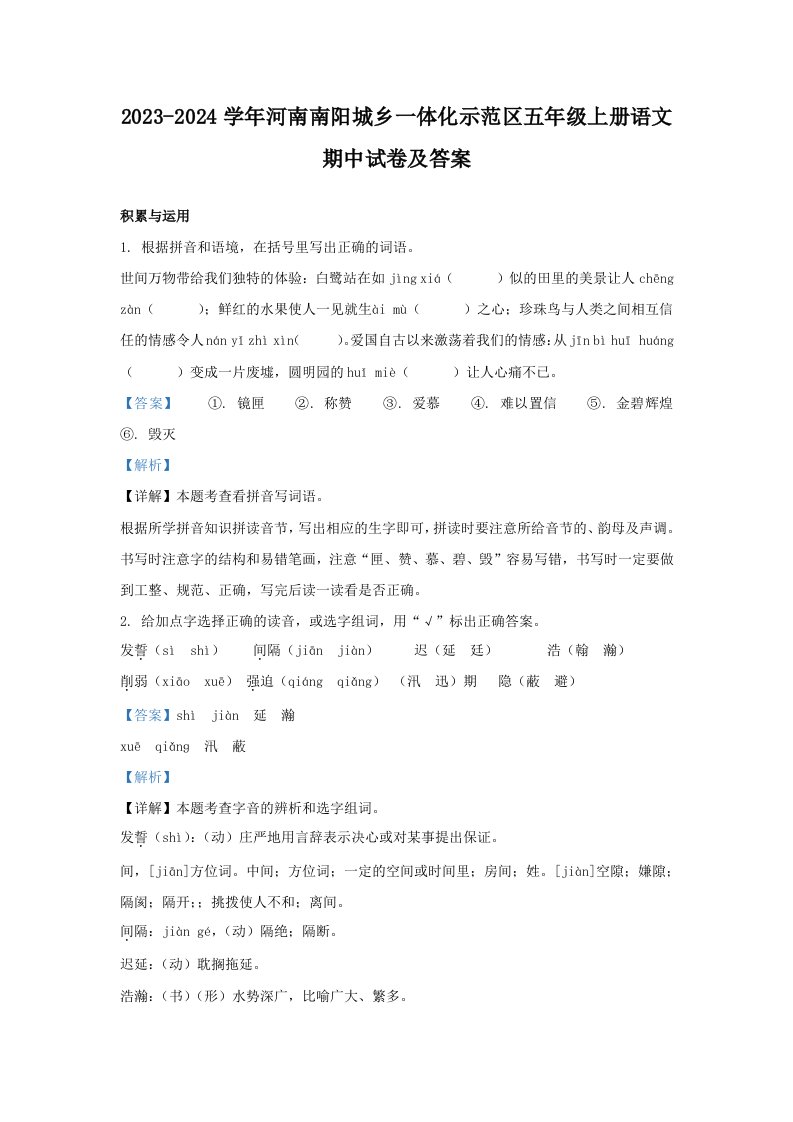当前位置: 首页小学资源小学五年级正文 2023-2024学年河南南阳城乡一体化示范区五年级上册语文期中试卷及答案(Word版)_共10页 小学五年级 7 天前 0 0 5 以上为部分内容预览,如需源文档请登录您的会员账号进行下载! 声明:本站所有文章,如无特殊说明或标注,均为本站原创发布。任何个人或组织,在未征得本站同意时,禁止复制、盗用、采集、发布本站内容到任何网站、书籍等各类媒体平台。如若本站内容侵犯了原著者的合法权益,可联系我们进行处理。 尚学资源永久会员 打赏 收藏 海报 链接