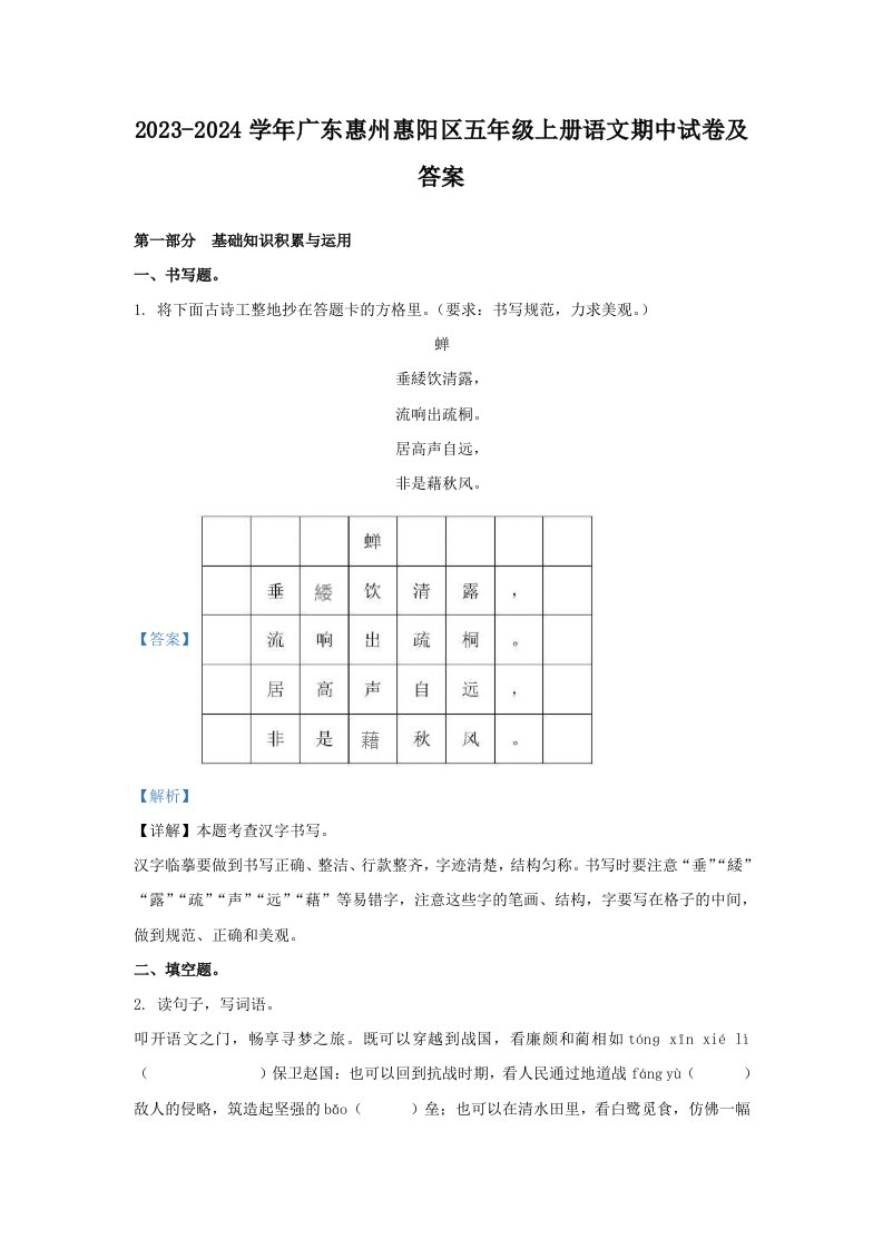 当前位置: 首页小学资源小学五年级正文 2023-2024学年广东惠州惠阳区五年级上册语文期中试卷及答案(Word版)_共13页 小学五年级 7 天前 0 0 10 以上为部分内容预览,如需源文档请登录您的会员账号进行下载! 声明:本站所有文章,如无特殊说明或标注,均为本站原创发布。任何个人或组织,在未征得本站同意时,禁止复制、盗用、采集、发布本站内容到任何网站、书籍等各类媒体平台。如若本站内容侵犯了原著者的合法权益,可联系我们进行处理。 尚学资源永久会员 打赏 收藏 海报 链接