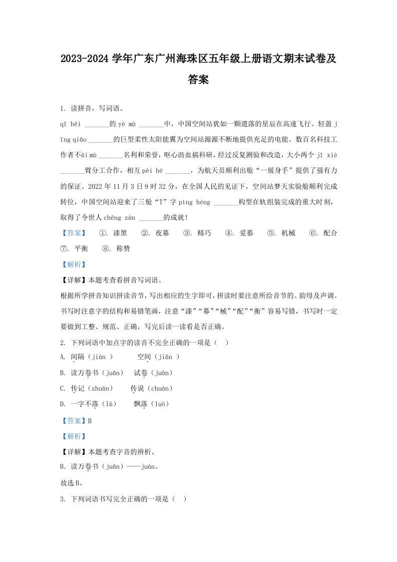 当前位置: 首页小学资源小学五年级正文 2023-2024学年广东广州海珠区五年级上册语文期末试卷及答案(Word版)_共16页 小学五年级 7 天前 0 0 10 以上为部分内容预览,如需源文档请登录您的会员账号进行下载! 声明:本站所有文章,如无特殊说明或标注,均为本站原创发布。任何个人或组织,在未征得本站同意时,禁止复制、盗用、采集、发布本站内容到任何网站、书籍等各类媒体平台。如若本站内容侵犯了原著者的合法权益,可联系我们进行处理。 尚学资源永久会员 打赏 收藏 海报 链接