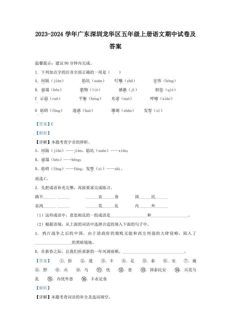 当前位置: 首页小学资源小学五年级正文 2023-2024学年广东深圳龙华区五年级上册语文期中试卷及答案(Word版)_共12页 小学五年级 7 天前 0 0 10 以上为部分内容预览,如需源文档请登录您的会员账号进行下载! 声明:本站所有文章,如无特殊说明或标注,均为本站原创发布。任何个人或组织,在未征得本站同意时,禁止复制、盗用、采集、发布本站内容到任何网站、书籍等各类媒体平台。如若本站内容侵犯了原著者的合法权益,可联系我们进行处理。 尚学资源永久会员 打赏 收藏 海报 链接