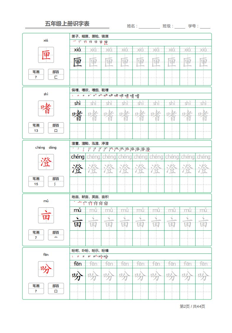 当前位置: 首页小学资源小学五年级正文 五上语文:识字表字帖描红_共44页 小学五年级 1 周前 0 0 15 以上为部分内容预览,如需源文档请登录您的会员账号进行下载! 声明:本站所有文章,如无特殊说明或标注,均为本站原创发布。任何个人或组织,在未征得本站同意时,禁止复制、盗用、采集、发布本站内容到任何网站、书籍等各类媒体平台。如若本站内容侵犯了原著者的合法权益,可联系我们进行处理。 尚学资源永久会员 打赏 收藏 海报 链接