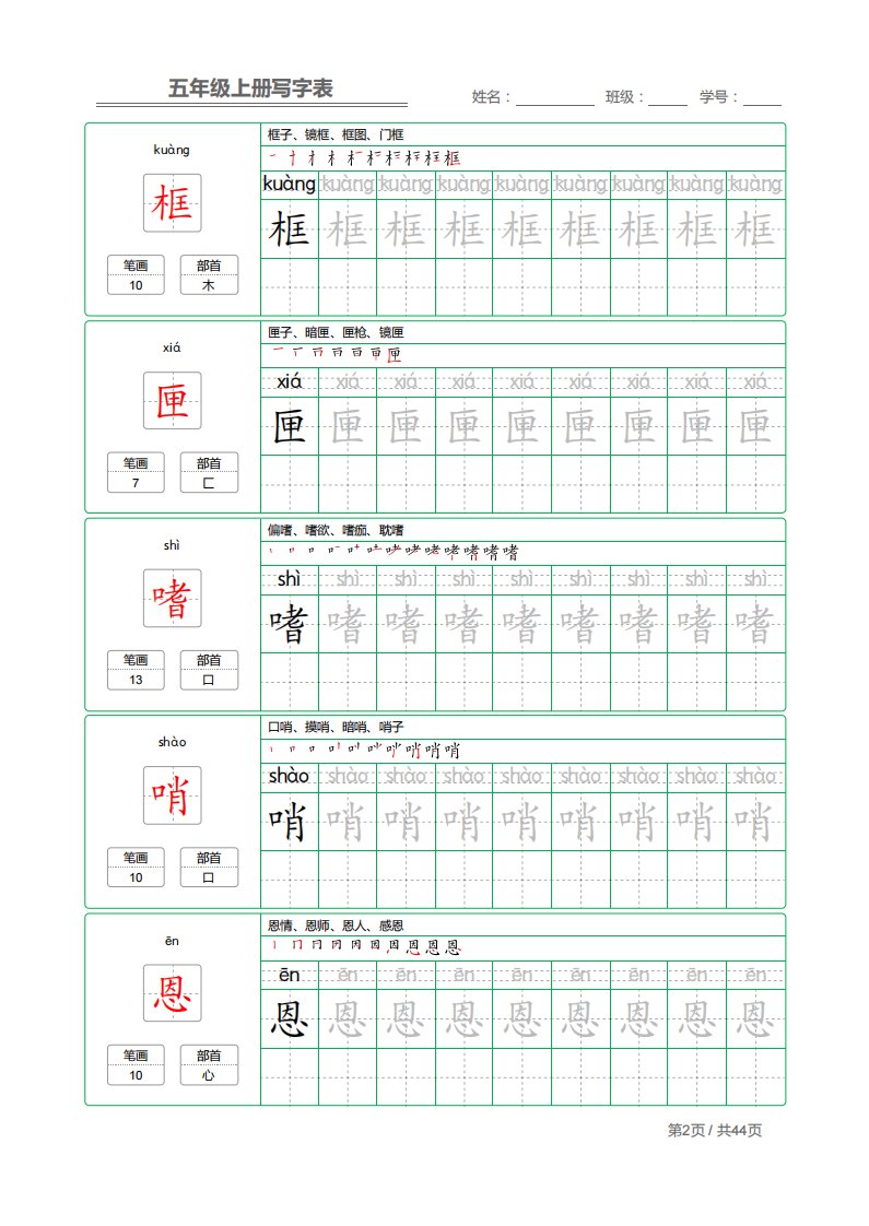 当前位置: 首页小学资源小学五年级正文 五上语文:写字表字帖描红_共44页 小学五年级 1 周前 0 0 15 以上为部分内容预览,如需源文档请登录您的会员账号进行下载! 声明:本站所有文章,如无特殊说明或标注,均为本站原创发布。任何个人或组织,在未征得本站同意时,禁止复制、盗用、采集、发布本站内容到任何网站、书籍等各类媒体平台。如若本站内容侵犯了原著者的合法权益,可联系我们进行处理。 尚学资源永久会员 打赏 收藏 海报 链接
