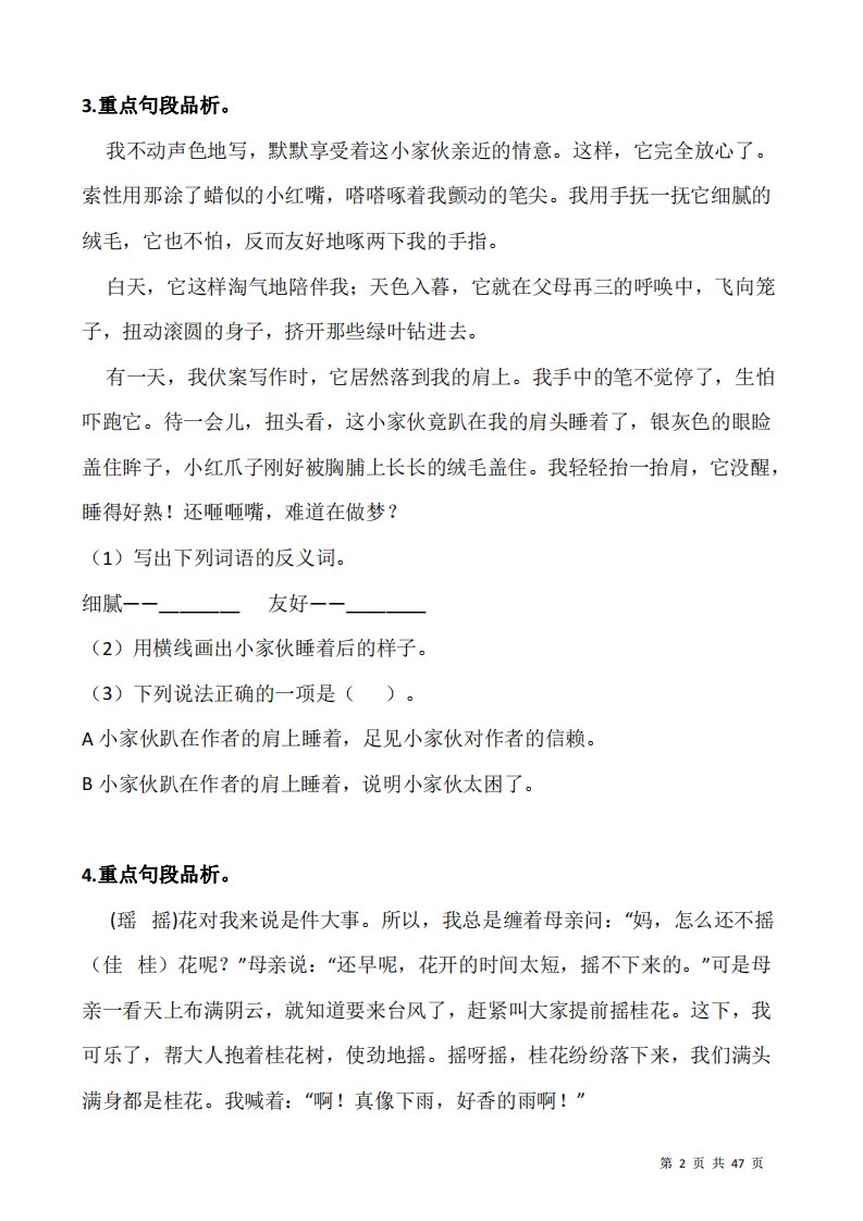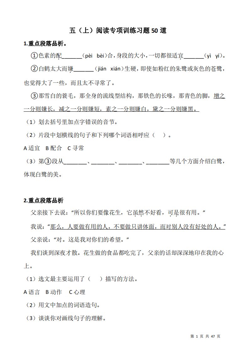 当前位置: 首页小学资源小学五年级正文 五上语文:阅读专项训练习题50道_共47页 小学五年级 6 天前 0 0 15 以上为部分内容预览,如需源文档请登录您的会员账号进行下载! 声明:本站所有文章,如无特殊说明或标注,均为本站原创发布。任何个人或组织,在未征得本站同意时,禁止复制、盗用、采集、发布本站内容到任何网站、书籍等各类媒体平台。如若本站内容侵犯了原著者的合法权益,可联系我们进行处理。 尚学资源永久会员 打赏 收藏 海报 链接