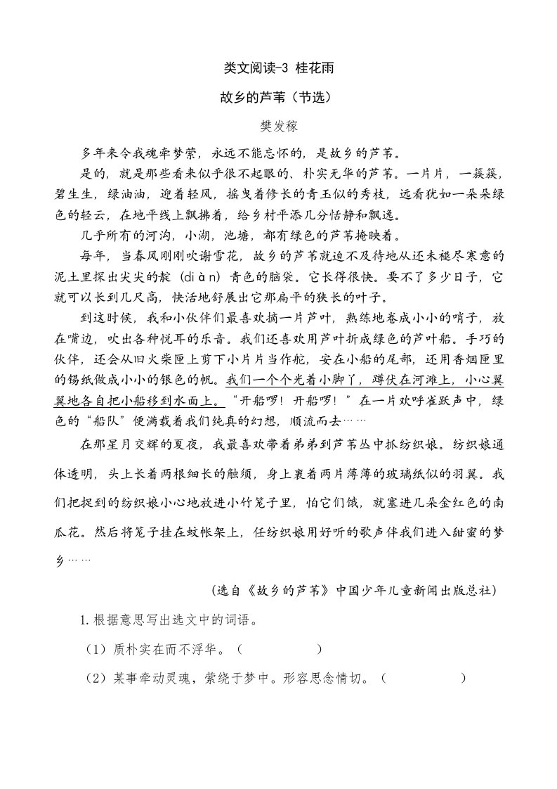 当前位置: 首页小学资源小学五年级正文 五年级语文上册类文阅读-3桂花雨(部编版)_共4页 小学五年级 1 周前 0 0 5 以上为部分内容预览,如需源文档请登录您的会员账号进行下载! 声明:本站所有文章,如无特殊说明或标注,均为本站原创发布。任何个人或组织,在未征得本站同意时,禁止复制、盗用、采集、发布本站内容到任何网站、书籍等各类媒体平台。如若本站内容侵犯了原著者的合法权益,可联系我们进行处理。 尚学资源永久会员 打赏 收藏 海报 链接