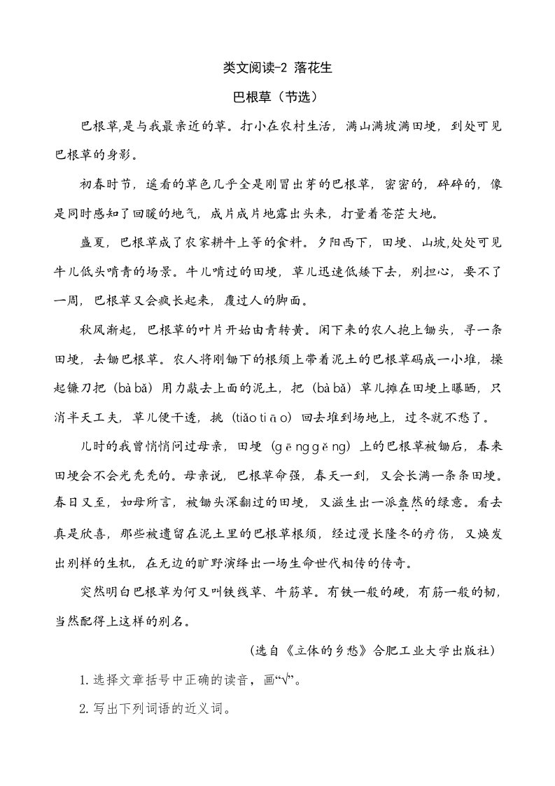 当前位置: 首页小学资源小学五年级正文 五年级语文上册类文阅读-2落花生(部编版)_共4页 小学五年级 7 天前 0 0 5 以上为部分内容预览,如需源文档请登录您的会员账号进行下载! 声明:本站所有文章,如无特殊说明或标注,均为本站原创发布。任何个人或组织,在未征得本站同意时,禁止复制、盗用、采集、发布本站内容到任何网站、书籍等各类媒体平台。如若本站内容侵犯了原著者的合法权益,可联系我们进行处理。 尚学资源永久会员 打赏 收藏 海报 链接