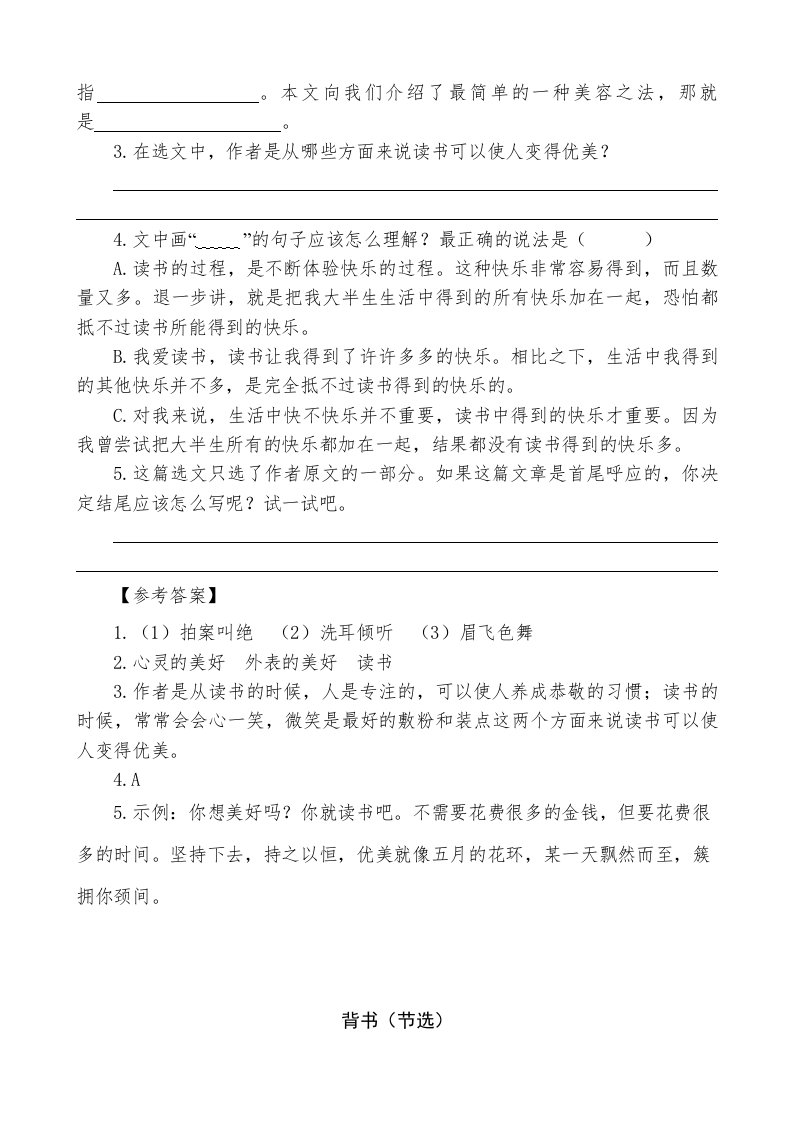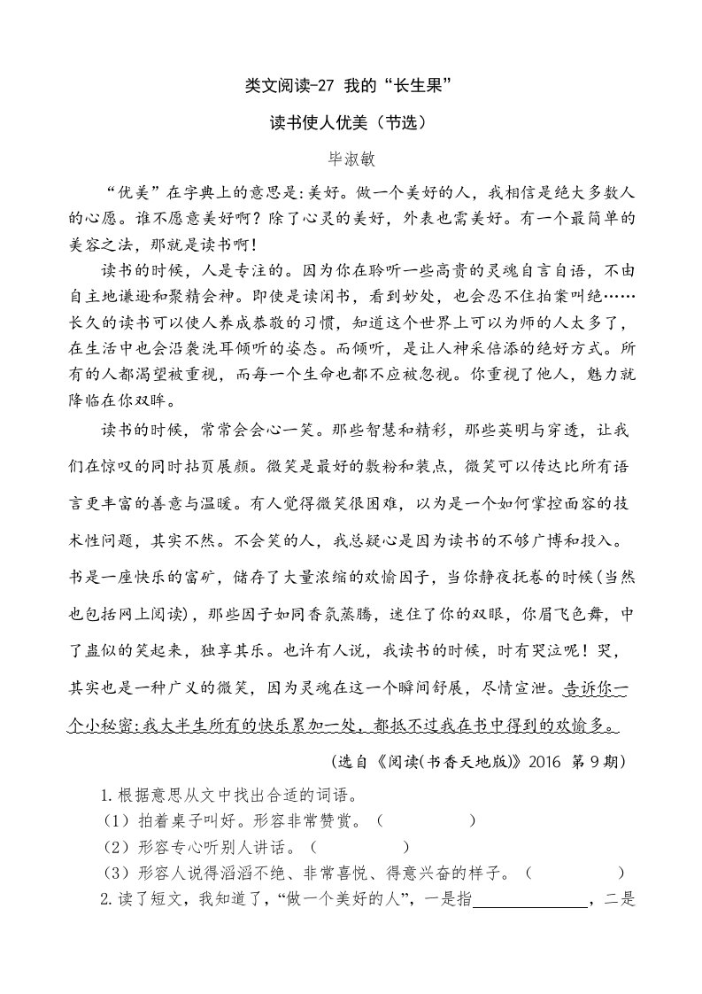 当前位置: 首页小学资源小学五年级正文 五年级语文上册类文阅读-27我的“长生果”(部编版)_共4页 小学五年级 7 天前 0 0 5 以上为部分内容预览,如需源文档请登录您的会员账号进行下载! 声明:本站所有文章,如无特殊说明或标注,均为本站原创发布。任何个人或组织,在未征得本站同意时,禁止复制、盗用、采集、发布本站内容到任何网站、书籍等各类媒体平台。如若本站内容侵犯了原著者的合法权益,可联系我们进行处理。 尚学资源永久会员 打赏 收藏 海报 链接