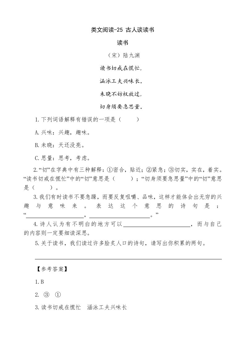 当前位置: 首页小学资源小学五年级正文 五年级语文上册类文阅读-25古人谈读书(部编版)_共3页 小学五年级 7 天前 0 0 5 以上为部分内容预览,如需源文档请登录您的会员账号进行下载! 声明:本站所有文章,如无特殊说明或标注,均为本站原创发布。任何个人或组织,在未征得本站同意时,禁止复制、盗用、采集、发布本站内容到任何网站、书籍等各类媒体平台。如若本站内容侵犯了原著者的合法权益,可联系我们进行处理。 尚学资源永久会员 打赏 收藏 海报 链接