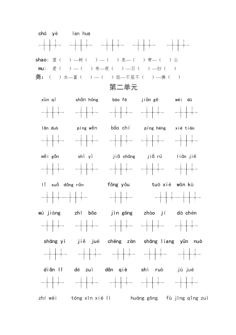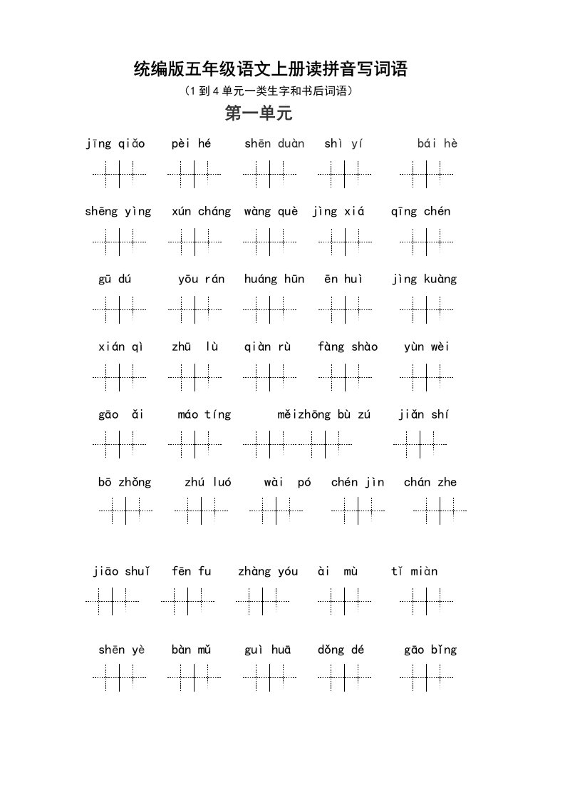 五年级语文上册(最新编必考)统编版读拼音写词语(1到4单元一类生字和书后词语)(部编版)_共6页