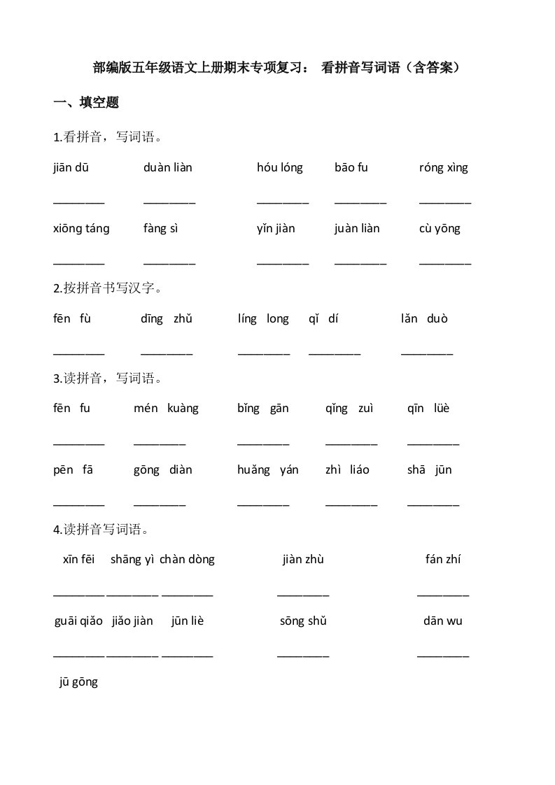 当前位置: 首页小学资源小学五年级正文 五年级语文上册、看拼音写词语(12页)(部编版)_共12页 小学五年级 1 周前 0 0 10 以上为部分内容预览,如需源文档请登录您的会员账号进行下载! 声明:本站所有文章,如无特殊说明或标注,均为本站原创发布。任何个人或组织,在未征得本站同意时,禁止复制、盗用、采集、发布本站内容到任何网站、书籍等各类媒体平台。如若本站内容侵犯了原著者的合法权益,可联系我们进行处理。 尚学资源永久会员 打赏 收藏 海报 链接