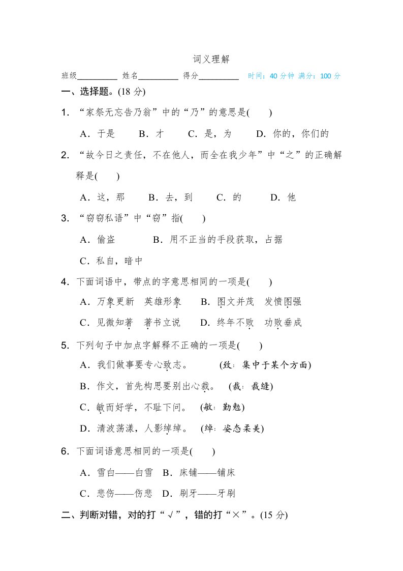当前位置: 首页小学资源小学五年级正文 五年级语文上册词义理解(部编版)_共5页 小学五年级 7 天前 0 0 5 以上为部分内容预览,如需源文档请登录您的会员账号进行下载! 声明:本站所有文章,如无特殊说明或标注,均为本站原创发布。任何个人或组织,在未征得本站同意时,禁止复制、盗用、采集、发布本站内容到任何网站、书籍等各类媒体平台。如若本站内容侵犯了原著者的合法权益,可联系我们进行处理。 尚学资源永久会员 打赏 收藏 海报 链接