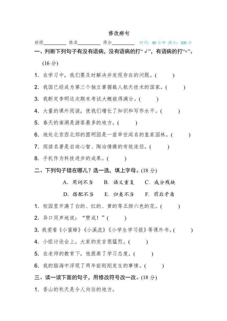 当前位置: 首页小学资源小学五年级正文 五年级语文上册修改病句(部编版)_共5页 小学五年级 1 周前 0 0 5 以上为部分内容预览,如需源文档请登录您的会员账号进行下载! 声明:本站所有文章,如无特殊说明或标注,均为本站原创发布。任何个人或组织,在未征得本站同意时,禁止复制、盗用、采集、发布本站内容到任何网站、书籍等各类媒体平台。如若本站内容侵犯了原著者的合法权益,可联系我们进行处理。 尚学资源永久会员 打赏 收藏 海报 链接