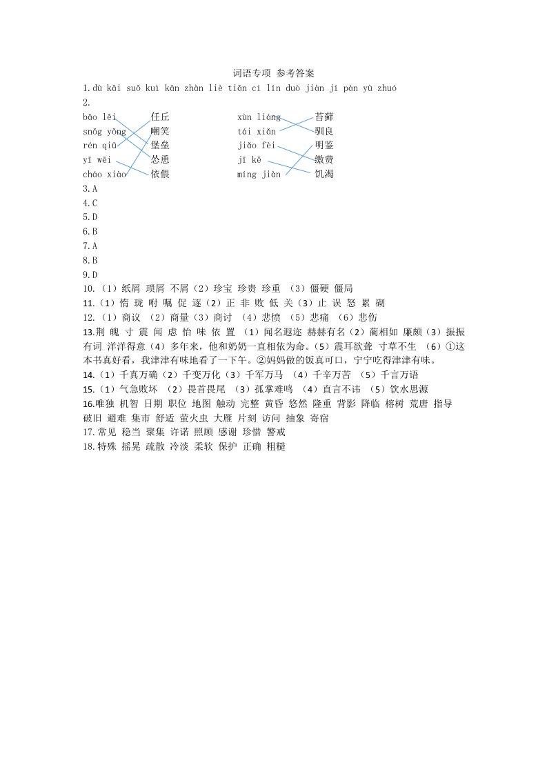 当前位置: 首页小学资源小学五年级正文 五年级语文上册词语专项参考答案(部编版)_共1页 小学五年级 7 天前 0 0 5 以上为部分内容预览,如需源文档请登录您的会员账号进行下载! 声明:本站所有文章,如无特殊说明或标注,均为本站原创发布。任何个人或组织,在未征得本站同意时,禁止复制、盗用、采集、发布本站内容到任何网站、书籍等各类媒体平台。如若本站内容侵犯了原著者的合法权益,可联系我们进行处理。 尚学资源永久会员 打赏 收藏 海报 链接