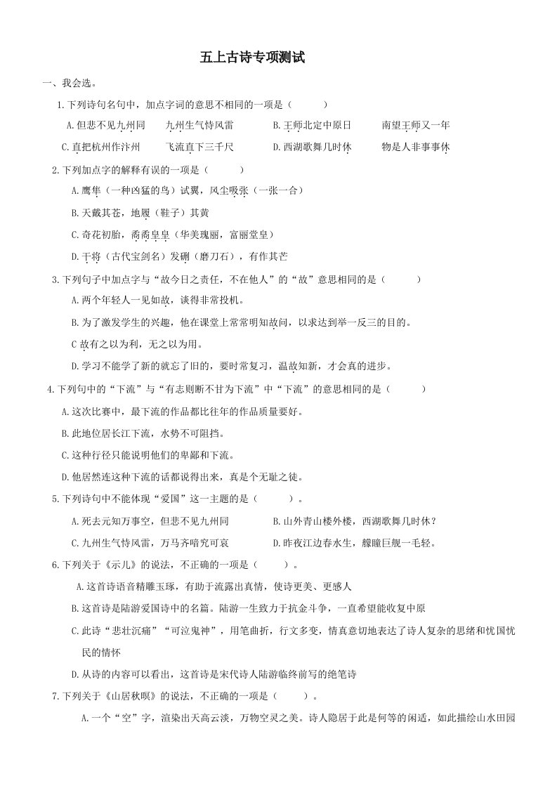当前位置: 首页小学资源小学五年级正文 五年级语文上册古诗专项(部编版)_共6页 小学五年级 7 天前 0 0 5 以上为部分内容预览,如需源文档请登录您的会员账号进行下载! 声明:本站所有文章,如无特殊说明或标注,均为本站原创发布。任何个人或组织,在未征得本站同意时,禁止复制、盗用、采集、发布本站内容到任何网站、书籍等各类媒体平台。如若本站内容侵犯了原著者的合法权益,可联系我们进行处理。 尚学资源永久会员 打赏 收藏 海报 链接
