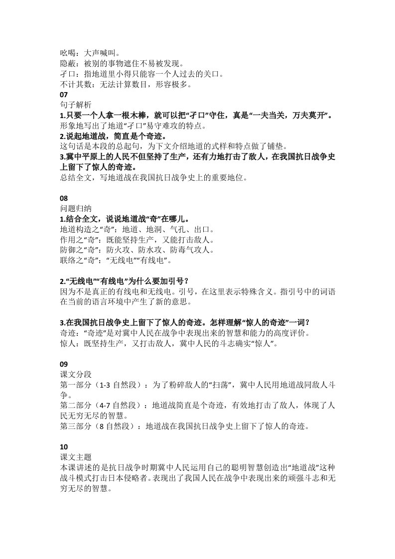 当前位置: 首页小学资源小学五年级正文 五年级语文上册课文第8课《冀中的地道战》(部编版)_共3页 小学五年级 1 周前 0 0 5 以上为部分内容预览,如需源文档请登录您的会员账号进行下载! 声明:本站所有文章,如无特殊说明或标注,均为本站原创发布。任何个人或组织,在未征得本站同意时,禁止复制、盗用、采集、发布本站内容到任何网站、书籍等各类媒体平台。如若本站内容侵犯了原著者的合法权益,可联系我们进行处理。 尚学资源永久会员 打赏 收藏 海报 链接