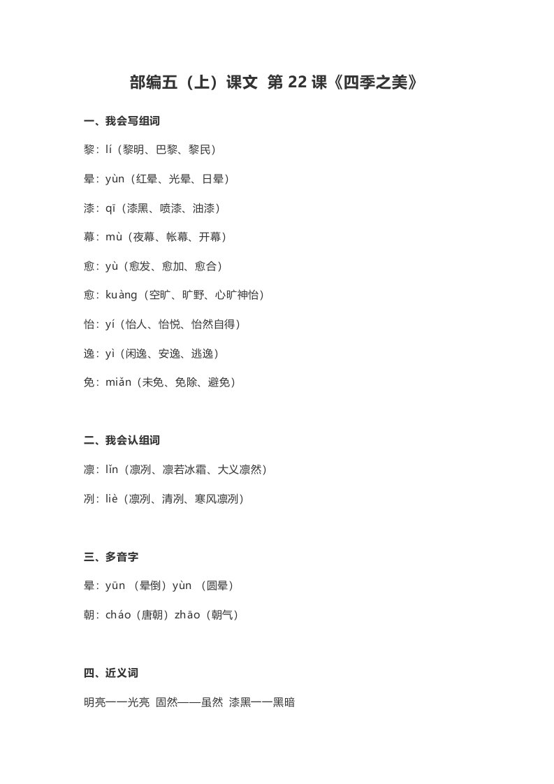 当前位置: 首页小学资源小学五年级正文 五年级语文上册课文第22课《四季之美》(部编版)_共6页 小学五年级 7 天前 0 0 5 以上为部分内容预览,如需源文档请登录您的会员账号进行下载! 声明:本站所有文章,如无特殊说明或标注,均为本站原创发布。任何个人或组织,在未征得本站同意时,禁止复制、盗用、采集、发布本站内容到任何网站、书籍等各类媒体平台。如若本站内容侵犯了原著者的合法权益,可联系我们进行处理。 尚学资源永久会员 打赏 收藏 海报 链接
