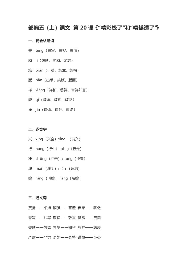 当前位置: 首页小学资源小学五年级正文 五年级语文上册课文第20课《“精彩极了”和“糟糕透了”》(部编版)_共6页 小学五年级 7 天前 0 0 5 以上为部分内容预览,如需源文档请登录您的会员账号进行下载! 声明:本站所有文章,如无特殊说明或标注,均为本站原创发布。任何个人或组织,在未征得本站同意时,禁止复制、盗用、采集、发布本站内容到任何网站、书籍等各类媒体平台。如若本站内容侵犯了原著者的合法权益,可联系我们进行处理。 尚学资源永久会员 打赏 收藏 海报 链接