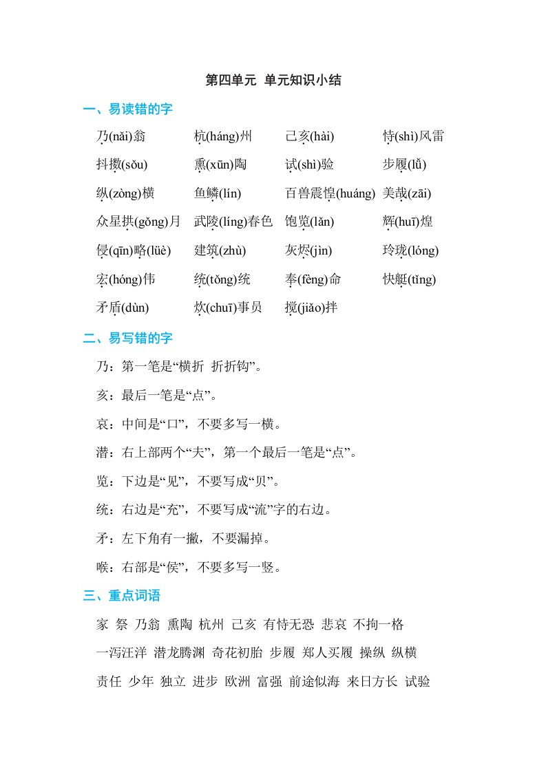 五年级语文上册第四单元单元知识小结(部编版)_共4页