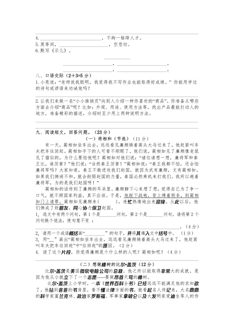 当前位置: 首页小学资源小学五年级正文 五年级语文上册期中测试卷3(部编版)_共6页 小学五年级 7 天前 0 0 5 以上为部分内容预览,如需源文档请登录您的会员账号进行下载! 声明:本站所有文章,如无特殊说明或标注,均为本站原创发布。任何个人或组织,在未征得本站同意时,禁止复制、盗用、采集、发布本站内容到任何网站、书籍等各类媒体平台。如若本站内容侵犯了原著者的合法权益,可联系我们进行处理。 尚学资源永久会员 打赏 收藏 海报 链接